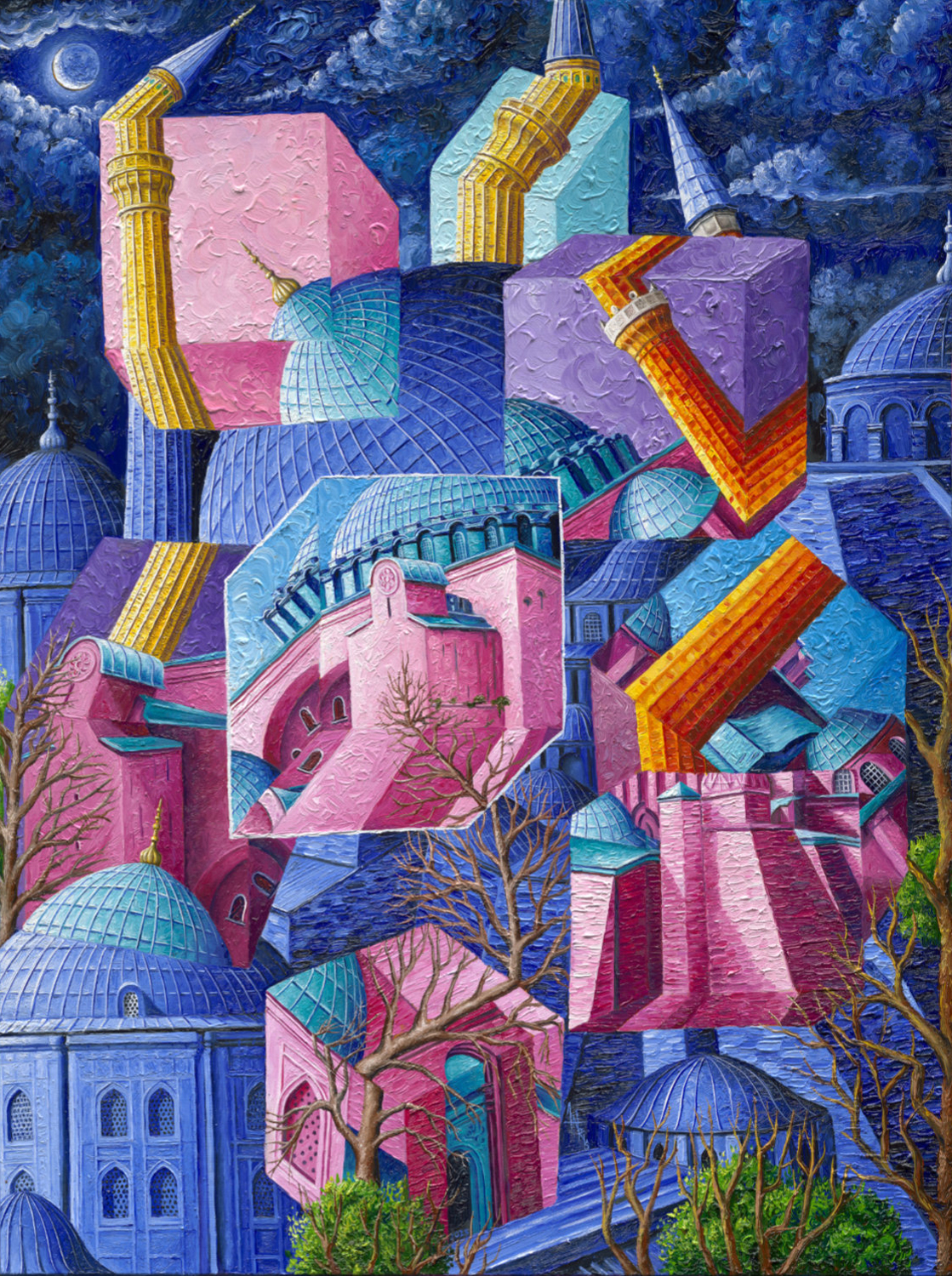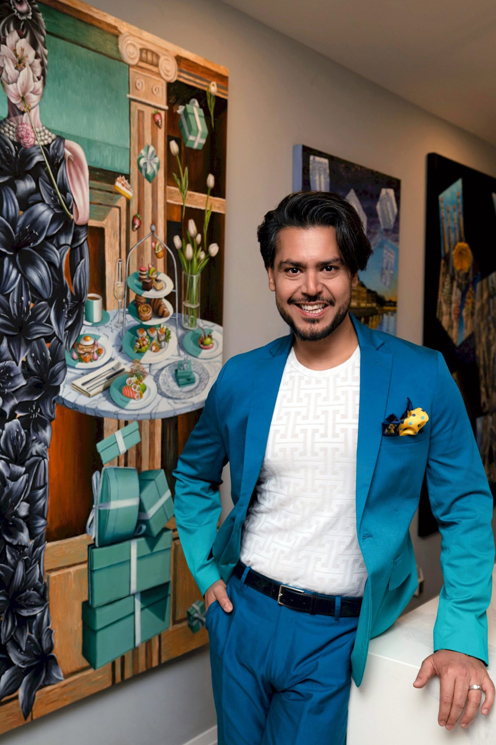 Haris is a Canadian-Pakistani visual artist whose path from actuarial science to fine art informs the precision and imagination within his work. After an 18-year career in finance, a visit to Dalí’s crypt reignited his early passion for painting, leading him to learn oil painting techniques and develop what he calls “referential surrealism.” Influenced by his life between East and West, his contemporary compositions blend architectural forms and lush florals into fantastical worlds that reflect his belief in the oneness of humanity, while celebrating beauty, culture, and the strength of femininity.