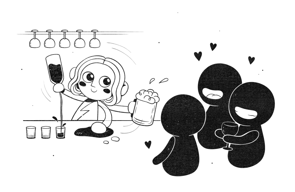 Always asking questions, Energetic Sarah pours beer with one hand, shots of tequila in the other, and wipes the bar clean with her third. Only the bright, beautiful, and ever-so-enchanting Sarah can do a three-hand juggle with only one pair of hands!