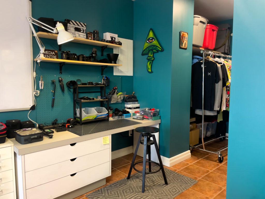 The studio is a fully functional film studio and mini-post house. A selection of our most-in-use gear and travel equipment is stored on-site, while our partnership with a neighbouring creator provides access to a wide collection of production cameras and equipment. There is one fully-fleshed out editing suite for the “serious editor,” and access to a myriad of tools for post production. Having full shoot and edit capacity in-house is one of the reasons Pixel Dreams can work with speed and efficiency on client work.
