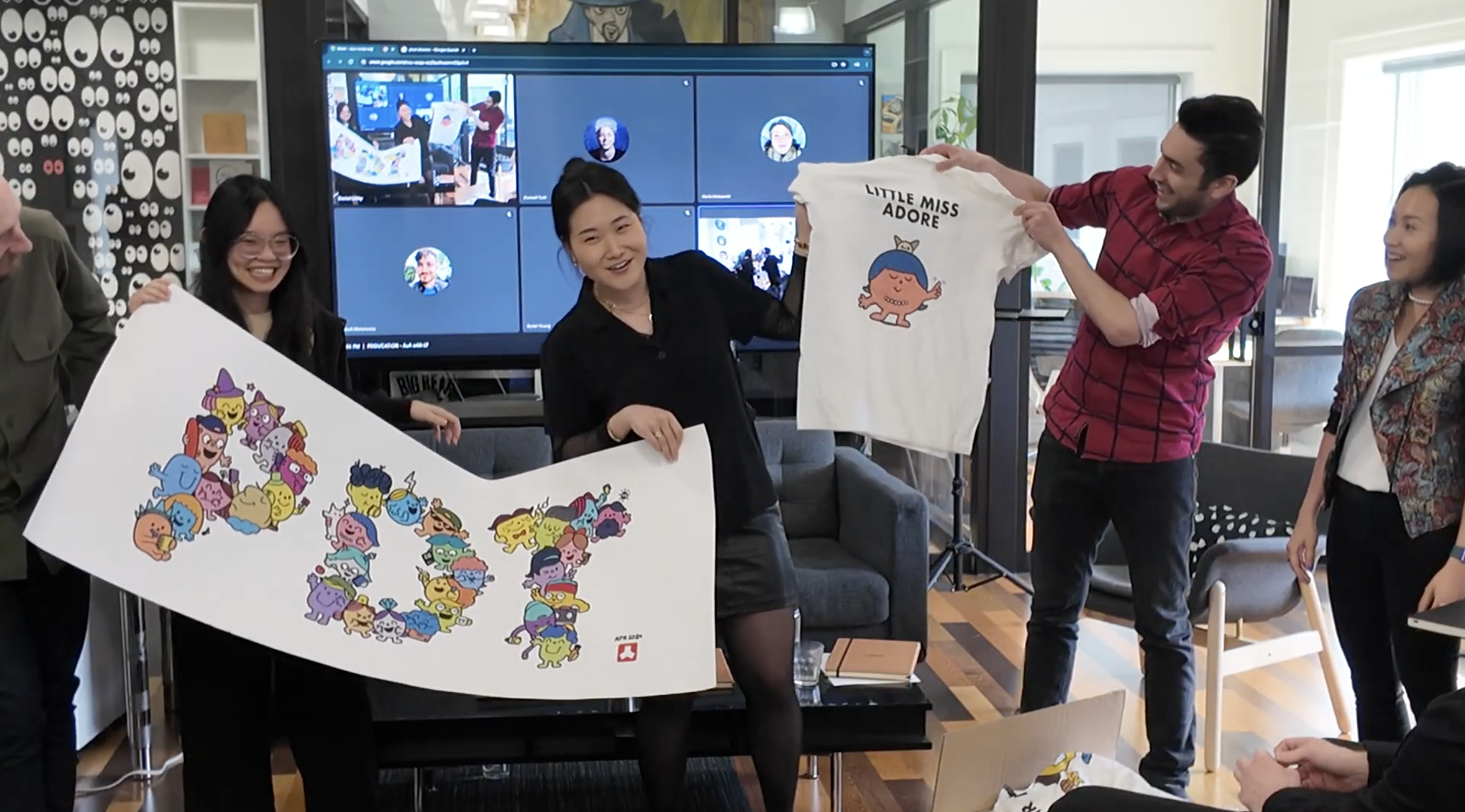 With the party theme and creative concept set, the committee had their work cut out. The to-do list consisted of 30+ custom characters, a PDT mosaic, a custom merch line for Little Miss Energize, and planning logistics for the party — all while keeping the theme undercover. The goal was to pleasantly surprise all PDTers, not only Sarah!