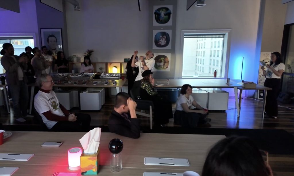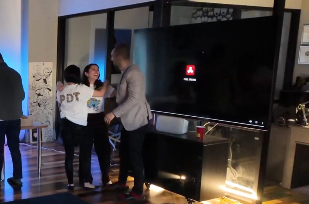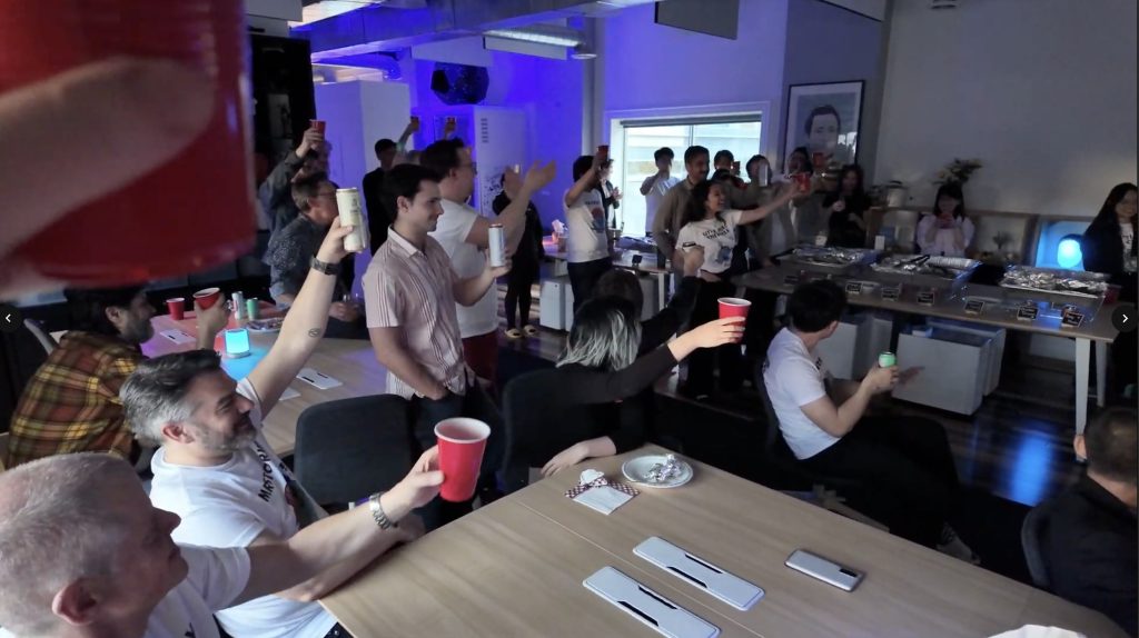 “It’s so nice having everyone under one roof. For those who don’t know, it’s actually a very special evening. It’s a celebration for our very own Sarah, AKA Energize. Sarah’s a very integral part of Pixel Dreams. She’s one of our partners and she just celebrated 10 years here, which is massive. And so tonight, we’re going to celebrate Sarah. It’s a tribute to you. The team has put together a video for you. Without further ado, raise a glass, or a cup, or a can — whatever you have — to Sarah, AKA Energize. Thank you so much for being you.”