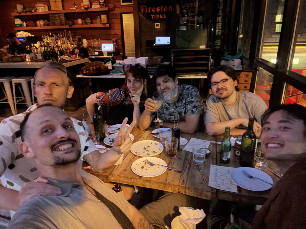 The team dinner took place while Harvey aka Enhance was visiting from his native UK. For a team used to collaborating across time zones and chat threads, the outing was a reminder that to do our best work, we need the camaraderie, spontaneity, and shared rhythm that only happens face to face. Making time (and crossing vast distances) to gather in person keeps the team aligned with the work, the culture, and each other.