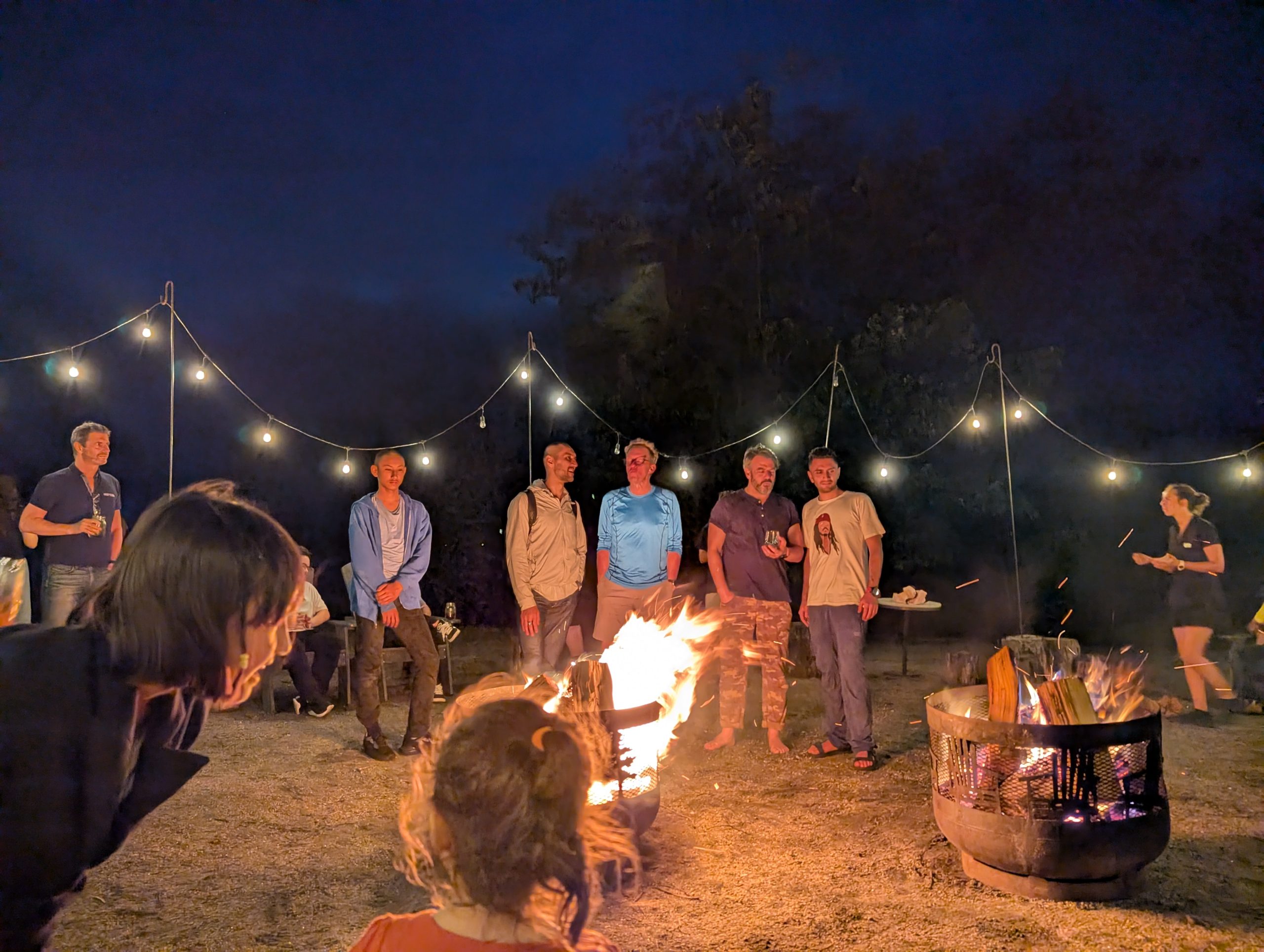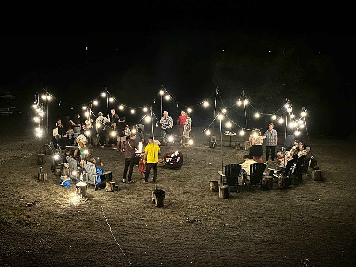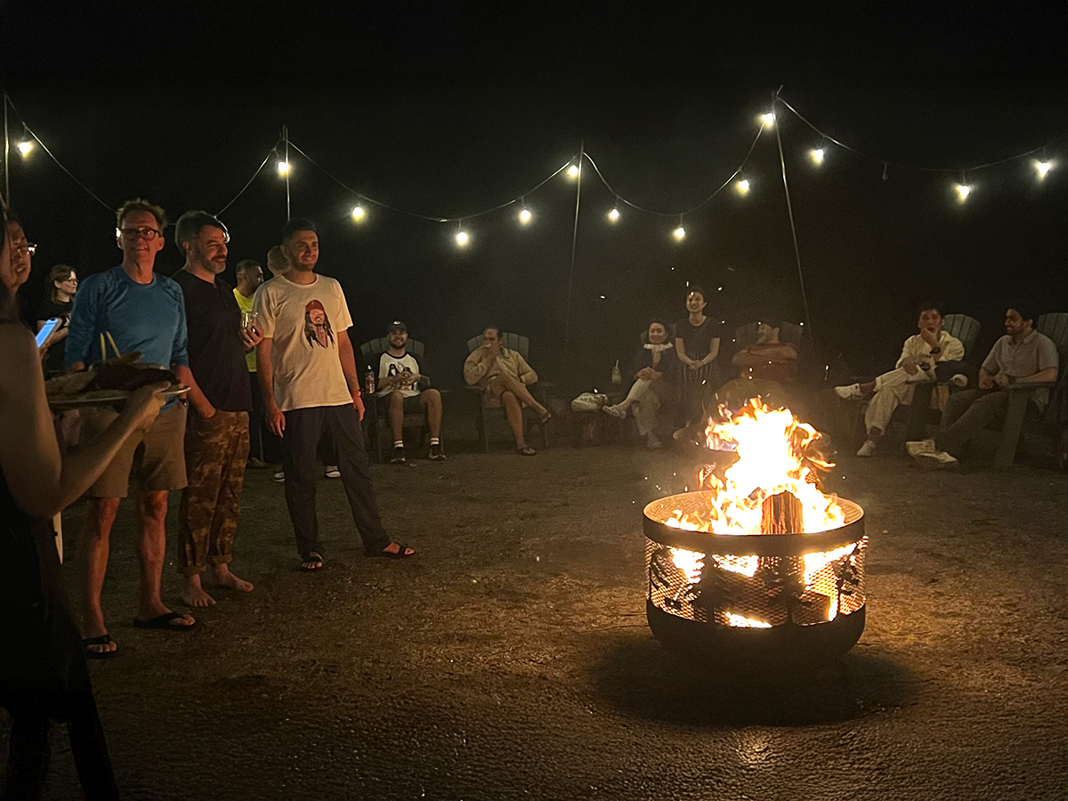 The getaway kicked off with the Summer Summit, with a major upgrade in production quality. By late afternoon, DJ Kevin had set up in the gazebo when a wall of rain swept across the lake. In minutes, the team formed a human shield around the equipment as the storm pounded down, knocking out the power and turning phones into flashlights.