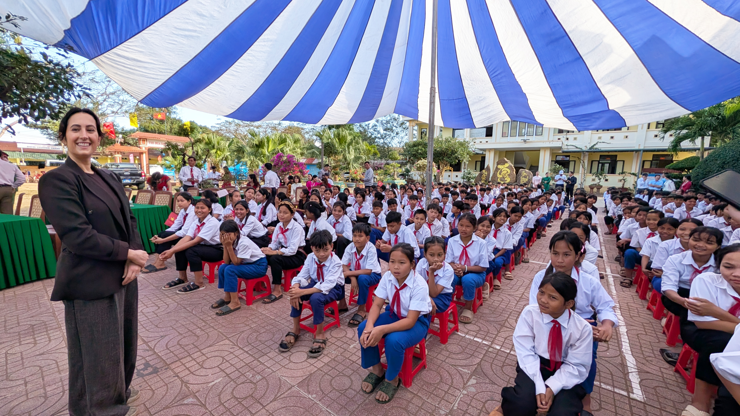 The ceremony closed with a group dance led by Mr Hoan, who invited students, teachers, organizers, and guests to join in. What followed was a joyful, unforgettable moment of unity and shared celebration. A short tea and fruit reception gave space for conversations with local educators and provincial leaders.