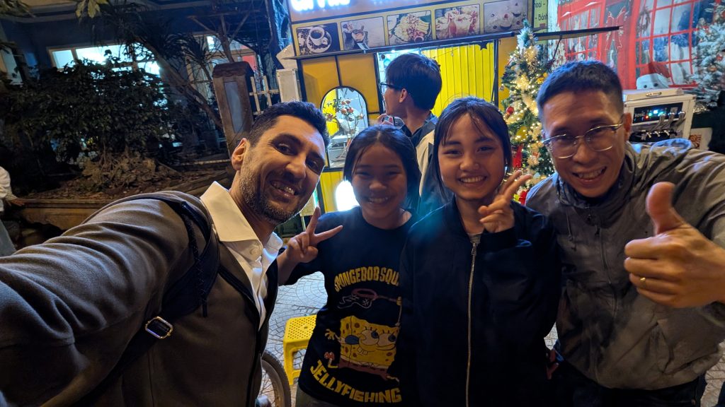Later that night, our CEO went on a reflective walk through the town, accompanied by Mr Nhan, Project Coordinator for the SEEDS Scholarship Program at Pacific Links. Their quiet stroll led to friendly encounters with locals, spontaneous photo ops, and a renewed sense of purpose for the work ahead.
