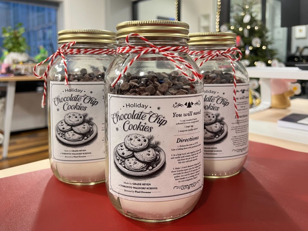 Every year, Pixel Dreams supports The Toronto Waldorf School holiday fundraiser. In 2025, the school sold its family-favourite chocolate chip cookie mix. Pixel Dreams bought 20 jars of cookie mix.