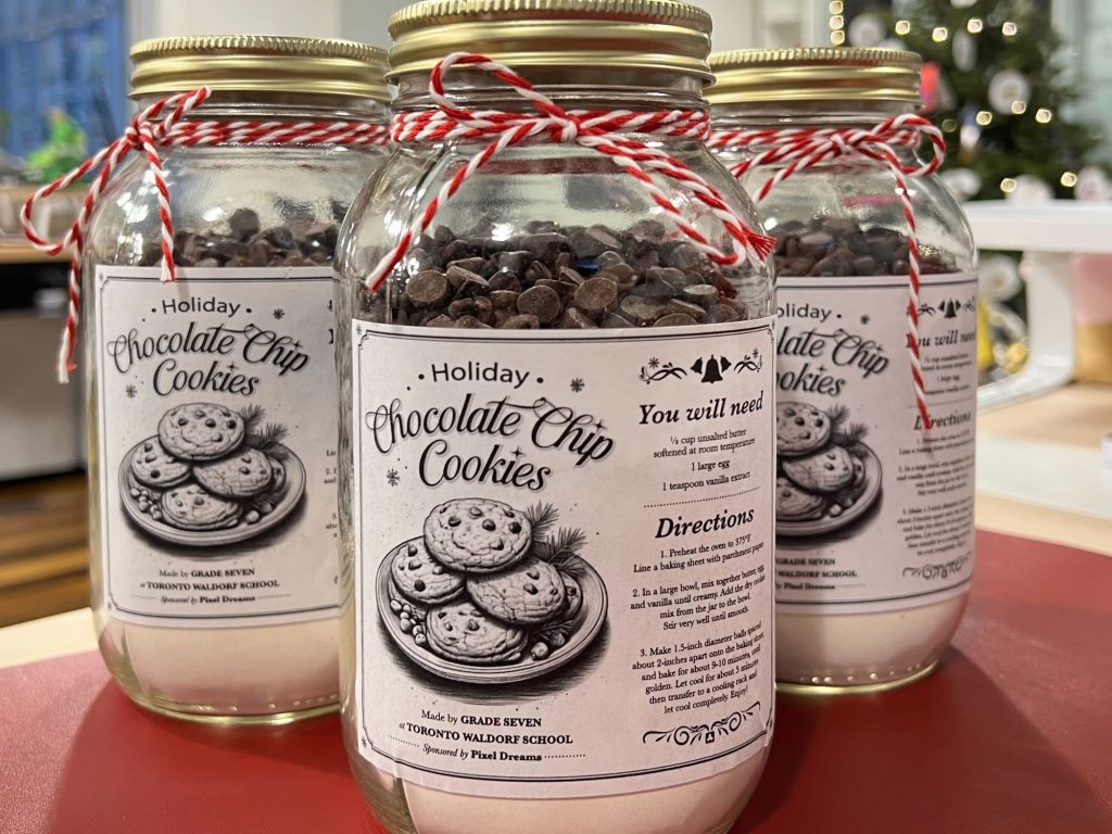 The Toronto Waldorf School held their annual fundraiser in November. In exchange for donations the school offered Holiday Cookie mixes made by their students and a 2025 calendar showcasing art made by their grade sevens. Our team designed the cookie jar label and the calendar, as well as covered the printing costs.