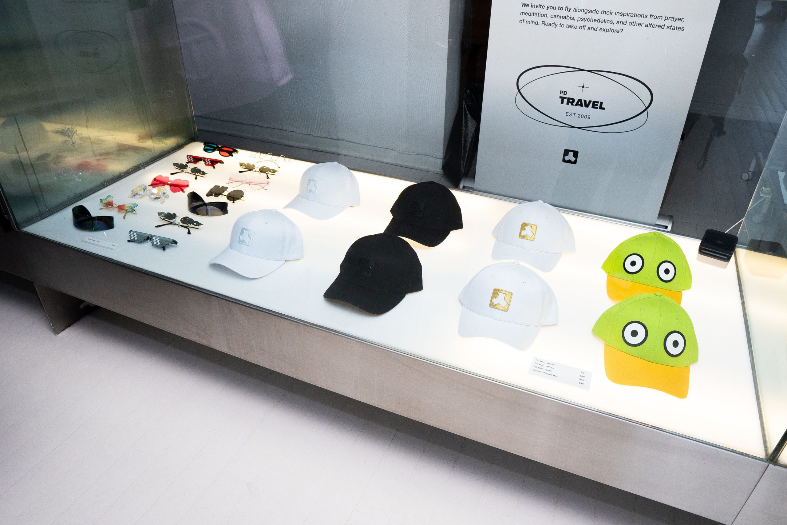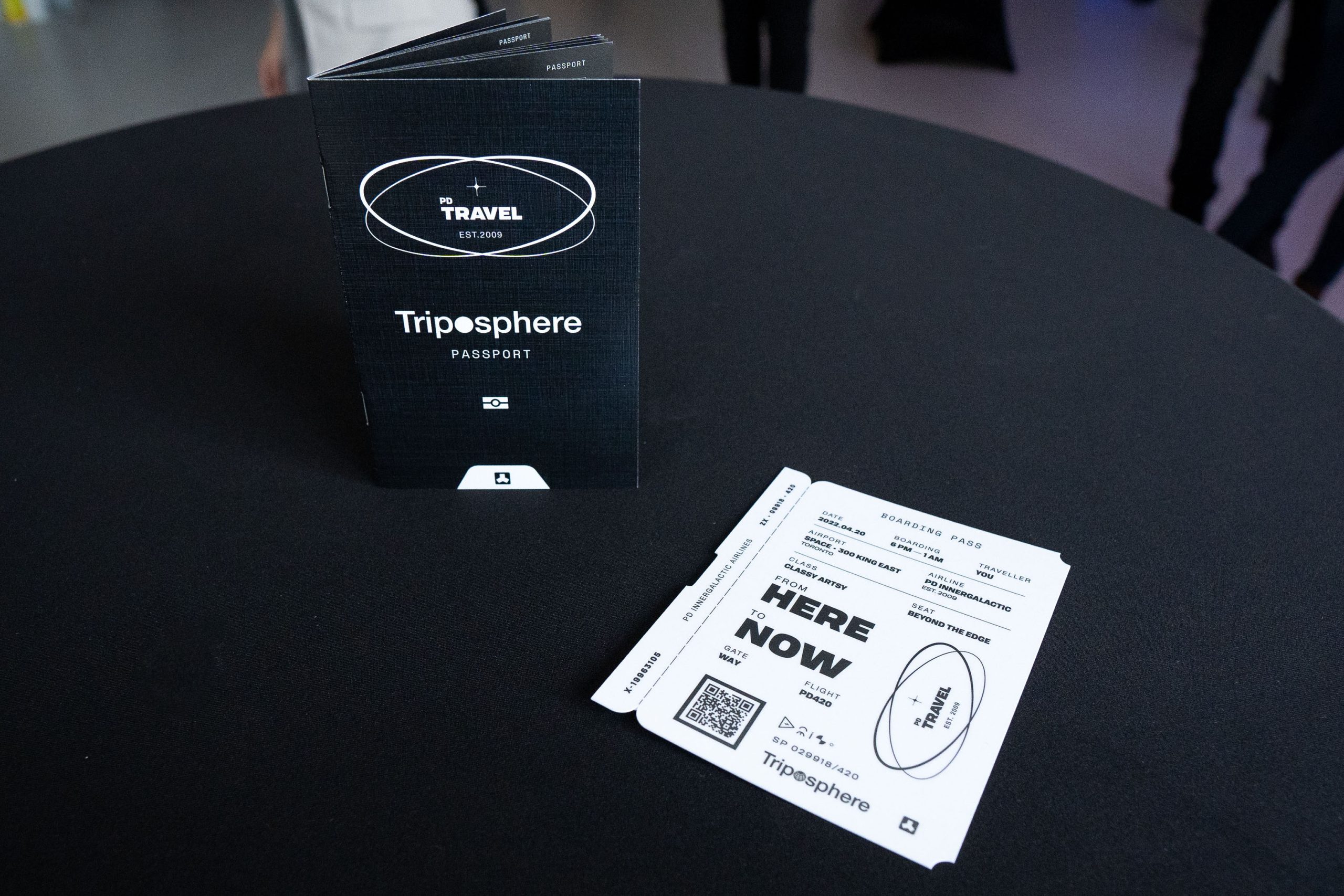 The theme of our art show was altered states. In our many discussions about experiencing altered states, whether it be from psychedelics or intense meditation, a common phrase that came up, again and again, was ‘tripping out’. With this in mind, our creative was lead with the idea of taking a trip on a plane. We infused every aspect of the experience with this idea, from the passports (event information) we handed to our guests to naming the different areas of the event space as terminals. Even our bartenders and hosts were costumed as flight attendants and pilots.
